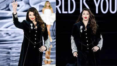Her styling kept the focus sharp. Loose, flowing waves framed her face, while a bold red lip brought a pop of glamour against the monochrome palette. Walking with poise, she exuded power without force, her presence alone enough to command attention. That signature Aishwarya smile and playful kiss to the audience sealed the night with timeless charm.The show itself was a star-studded celebration of beauty and sisterhood, featuring Kendall Jenner, Heidi Klum, Eva Longoria, Andie MacDowell, and Viola Davis. Yet, even in this dazzling lineup, Aishwarya stood out effortlessly. As she has for decades, she proved that true icons do not just follow fashion, they elevate it.