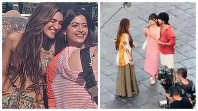 The clip sees the stars shooting on a busy street. Dressed in their summer best attire, the trio seemed to be shooting a scene that sees Shahid and Rashmika getting up-close and personal. The three are seen walking down the street, with Shahid walking with his arm around Rashmika. The two then embrace while Kriti makes hearts around them.Photos doing the rounds also see Kriti rocking fun and flirty outfits, while Rashmika seems to don shrugs over dresses, making for a more modest avatar.