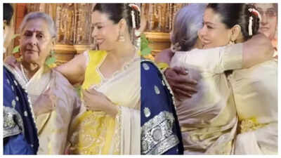 Jaya Bachchan and Kajol greet each other with a big, tight, warm hug at Durga Pujo Pandal in Mumbai- Watch