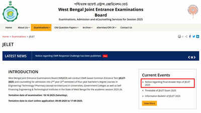 Candidates can follow the steps below to check and download the final answer key from the JELET portal:Step 1: Visit the official website at https://wbjeeb.nic.in/jelet/.Step 2: Locate and select the ‘JELET 2025’ tab displayed on the homepage.Step 3: Click on the option titled “Final Answer Key JELET 2025.”Step 4: Access the PDF containing the finalised responses and withdrawn questions.Step 5: Download the document for detailed checking and future reference.The board also published a direct link to the document for convenience: HereJELET is conducted for admissions to lateral entry engineering programmes across participating institutions in West Bengal, and the upcoming results will enable candidates to access their rank cards and continue with the admission process.