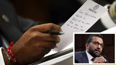 The photograph of a handwritten note of FBI director Kash Patel from the recent congressional hearing is going viral as Patel dominated the headlines the past weeks — first with his ‘missteps’ in the Charlie Kirk investigation and then with his heated Congress hearing. The purported photo shows Kash Patel’s hand along with the notes where he apparently jotted down a few points. But social media users pointed out that those notes read more like affirmations that Kash Patel needed to face the tough hearing. Another reason the photo went viral was a silver bracelet with an ‘Om’ symbol that Patel was wearing, reaffirming his Hindu faith.