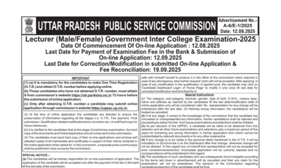 The application fee has been set at ₹125 for candidates belonging to the Unreserved, Economically Weaker Section (EWS), and Other Backward Classes (OBC) categories. Applicants from Scheduled Castes (SC) and Scheduled Tribes (ST) are required to pay ₹65, while candidates with disabilities (PwD) need to pay only ₹25. The payment can be made online through net banking, debit or credit cards, and other approved digital methods. Once the fee is paid, a Payment Transaction Slip will be generated, which candidates must print and retain for future reference.Candidates can download the official notification from the link provided here.Aspirants are further advised to stay tuned to the official website to get the complete details of the UPPSC Lecturer recruitment process 2025.